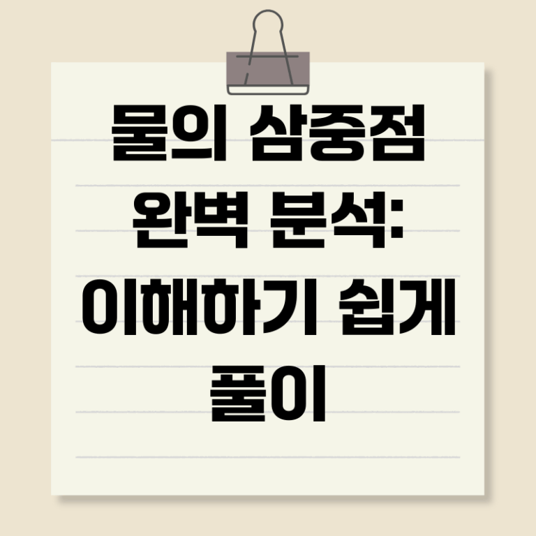 일상생활에서 흔히 접하는 물. 하지만 물의 세계는 우리가 상상하는 것 이상으로 복잡하고 흥미롭습니다. 특히 물의 삼중점은 과학계에서 매우 중요한 개념으로 여겨지는데요. 고체, 액체, 기체 세 가지 상태가 공존하는 이 특별한 지점을 완벽하게 이해한다면, 과학적 사고력을 한 단계 끌어올릴 수 있을 뿐만 아니라, 첨단 기술 분야에 대한 새로운 시각도 얻을 수 있습니다. 이 글에서는 물의 삼중점에 대한 모든 것을 쉽고 깊이 있게 파헤쳐 보겠습니다.