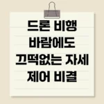 드론 비행 바람에도 끄떡없는 자세 제어 비결 드론은 이제 우리 생활 깊숙이 들어와 다양한 분야에서 활용되고 있습니다. 하지만 바람이라는 예상치 못한 변수는 드론 비행의 안정성을 크게 저해하는 요인입니다. 본 글에서는 드론이 바람에도 안정적인 자세를 유지할 수 있는 핵심 기술, 즉 자세 제어 비결을 심층적으로 파헤쳐보고, 실제 적용 사례와 함께 미래 발전 방향까지 제시합니다. 드론 자세