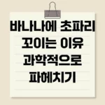 바나나에 초파리 꼬이는 이유 과학적으로 파헤치기 여름철, 달콤한 바나나를 식탁에 둔 순간 어김없이 나타나는 불청객, 초파리! 왜 하필 바나나일까요? 이 글에서는 초파리가 바나나에 그토록 열광하는 과학적인 이유를 명쾌하게 밝히고, 초파리로부터 바나나를 안전하게 지키는 실용적인 방법들을 제시합니다. 초파리, 그들은 누구인가? – 생태와 습성 이해 초파리는 파리목 초파리과에 속하는 작은 곤충으로, 전 세계적으로 약 1,500종 이상이 보고되어