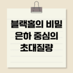 블랙홀: 은하를 꿰뚫는 우주의 눈동자 우주의 심연, 그 불가사의한 존재인 블랙홀. 빛조차 빠져나올 수 없는 이 ‘검은 구멍’은 오랫동안 과학자들의 호기심과 상상력을 자극해 왔습니다. 단순한 천체를 넘어 은하의 진화와 우주의 구조에 깊숙이 관여하는 블랙홀의 비밀을 파헤쳐보고, 우리가 블랙홀 연구를 통해 무엇을 알 수 있으며, 앞으로 어떤 질문에 답할 수 있을지 함께 탐구해 보겠습니다. 블랙홀, 그