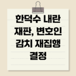 한덕수 내란 재판, 변호인 감치 재집행 결정 최근 한덕수 전 국무총리의 내란 관련 재판에서 변호인에 대한 감치 재집행 결정이 내려지며 법정 질서와 변호인의 책임에 대한 논쟁이 뜨겁습니다. 이 사건은 법치주의의 근간을 흔들 수 있는 중대한 사안으로, 법정 내에서의 적절한 변론 행위와 그 한계에 대한 심도 깊은 논의를 요구합니다. 한덕수 내란 재판과 변호인 감치 결정 배경