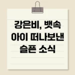 강은비, 뱃속 아이 떠나보낸 슬픈 소식 배우 강은비 씨가 임신 5개월 만에 겪은 유산 소식은 많은 이들에게 안타까움을 자아내고 있습니다. 40세의 나이에 자연 임신에 성공했지만, 예기치 못한 조기 양막 파열로 소중한 아이를 떠나보내야 했던 그녀의 슬픔은 쉽게 헤아릴 수 없습니다. 본 글에서는 강은비 씨의 안타까운 소식을 통해 유산의 원인, 심리적 영향, 그리고 이를 극복하기 위한
