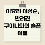 이효리 이상순, 반려견 구아나와의 슬픈 이별 이효리, 이상순 부부에게 15년간 큰 사랑을 받아온 반려견 구아나의 안타까운 소식이 전해졌습니다. 단순한 슬픔을 넘어, 반려동물과의 이별이 우리에게 던지는 깊은 의미와, 슬픔을 극복하고 건강하게 추억하는 방법에 대해 알아보고자 합니다. 이 글은 슬픔을 함께 나누고, 더 나은 반려동물 문화를 만들어가는 데 도움이 될 것입니다. 이효리 이상순 부부와 반려견 구아나의 특별한