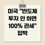 미국 “반도체 투자 안 하면 100% 관세” 압박 최근 미국이 한국을 포함한 주요 반도체 생산국에 대해 자국 내 투자 압박을 강화하며 파장이 예상됩니다. 만약 투자가 이루어지지 않을 경우, 메모리 반도체에 100% 관세를 부과하겠다는 초강경 입장을 밝히면서 국내 반도체 업계의 고민이 깊어지고 있습니다. 이러한 미국의 압박은 단순히 관세 문제에 그치지 않고, 글로벌 반도체 공급망 재편과 직결되는