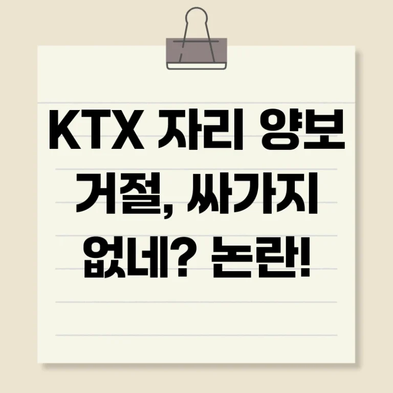 KTX 좌석 양보, 단순한 배려일까요, 권리일까요? 최근 KTX 특실에서 벌어진 자리 양보 요구 논란은 온라인을 뜨겁게 달구며 갑론을박을 불러일으키고 있습니다. 이 글에서는 KTX 좌석 양보 논란의 배경과 심리적 원인을 심층적으로 분석하고, 합리적인 해결 방안을 제시합니다.