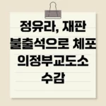 정유라, 재판 불출석으로 체포 의정부교도소 수감 최순실 씨의 딸 정유라 씨가 재판에 불출석하여 체포되었다는 소식은 많은 이들에게 다시 한번 국정농단 사태를 상기시키고 있습니다. 이번 사건은 법치주의의 근간을 흔드는 행위로, 사회적 공정성에 대한 심각한 질문을 던지고 있습니다. 정유라 씨의 체포 배경과 앞으로의 법적 절차, 그리고 사회에 미치는 영향까지 자세히 분석해 보겠습니다. 정유라 재판 불출석과 체포: 사건의 […]