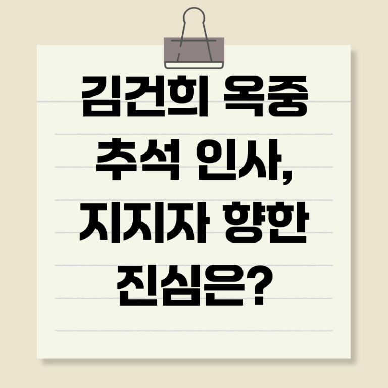 최근 김건희 여사가 옥중 서신 형태로 추석 인사를 전하면서, 단순한 명절 인사를 넘어 정치적 해석이 분분합니다. 과연 이 메시지는 지지자들을 향한 진심일까요, 아니면 다른 숨겨진 의도가 있는 것일까요? 이번 글에서는 김 여사의 추석 메시지를 심층 분석하고, 그 배경과 숨겨진 의미, 그리고 앞으로의 정치적 영향까지 짚어보겠습니다.