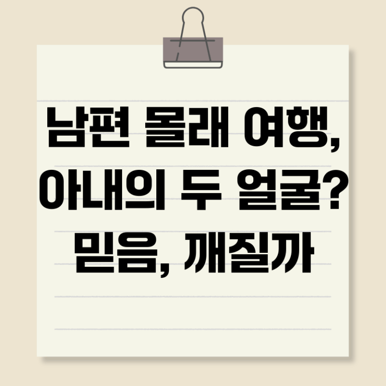 최근 온라인 커뮤니티를 뜨겁게 달군 논쟁, 바로 ‘남편 몰래 떠난 아내의 여행’입니다. 단순한 일탈일까요, 관계의 적신호일까요? 혹은, 억압된 일상에서 벗어나기 위한 몸부림일까요? 단순히 ‘잘못했다’, ‘이해한다’는 이분법적 시각을 넘어, 이 현상 속에 숨겨진 부부 관계의 역학, 사회적 압박, 그리고 여성 개인의 욕망을 심층적으로 파헤쳐 보고자 합니다.