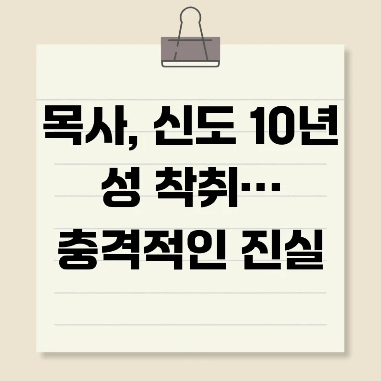 최근 한 목사가 신도들을 10년간 성적으로 착취한 사건이 드러나 사회에 큰 충격을 주고 있습니다. 이 글에서는 해당 사건의 충격적인 진실을 심층 분석하고, 유사 범죄를 예방하기 위한 실질적인 대응 방안을 제시합니다. 종교적 권위를 이용한 그루밍 범죄의 심각성을 인지하고, 피해자 보호를 위한 사회적 안전망 구축의 시급성을 강조하고자 합니다.