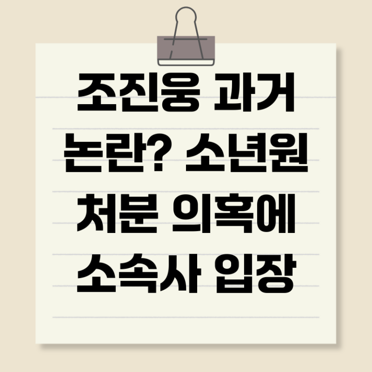 Q: 조진웅 소년원 처분 의혹, 사실인가요? A: 현재 소속사에서 사실 관계를 확인 중이며, 공식 입장을 기다려야 합니다.