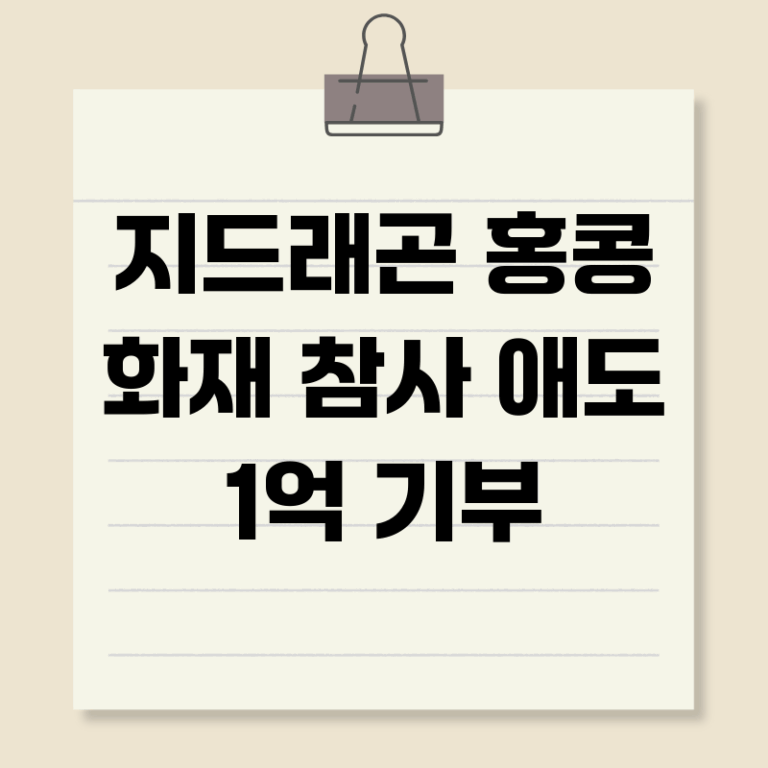 최근 홍콩에서 발생한 화재 참사에 대한 애도의 물결이 이어지는 가운데, 가수 지드래곤(G-DRAGON)이 1억 원을 기부하며 따뜻한 마음을 전했습니다. 이번 기부는 단순한 경제적 지원을 넘어, 재난으로 고통받는 이들에게 희망과 위로를 전달하는 의미있는 행보로 평가받고 있습니다.