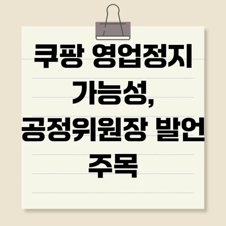 최근 쿠팡 이용자 사이에서 불안감이 고조되고 있습니다. 주병기 공정거래위원장의 “영업정지 가능성을 열어두고 있다”는 발언이 나오면서, 쿠팡의 미래에 대한 불확실성이 커지고 있기 때문입니다. 이 글에서는 공정위원장의 발언 배경과 쿠팡 영업정지 가능성의 현실성, 그리고 소비자에게 미치는 영향과 대응 전략을 심층적으로 분석합니다.