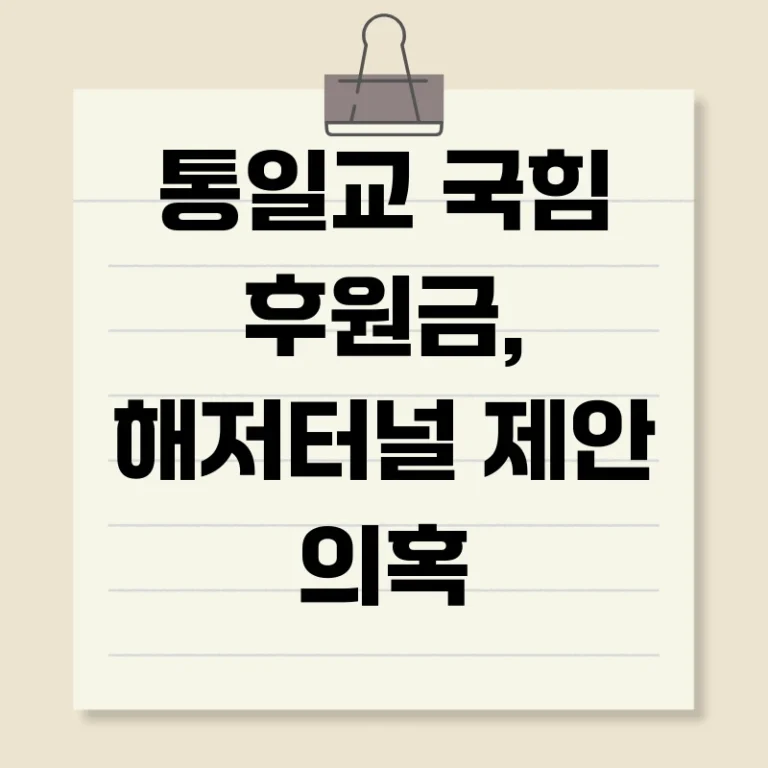 최근 불거진 통일교의 국민의힘 후원금 및 한일 해저터널 제안 의혹은 정치권과 종교계의 부적절한 관계에 대한 심각한 문제를 제기합니다. 이 글에서는 해당 의혹의 배경, 심층 분석, 그리고 우리 사회에 미치는 영향과 대응 전략을 자세히 살펴보겠습니다.