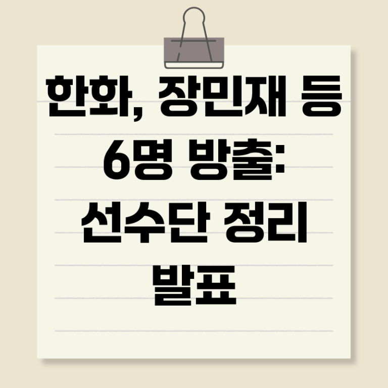 한화, 장민재 등 6명 방출: 선수단 정리 발표