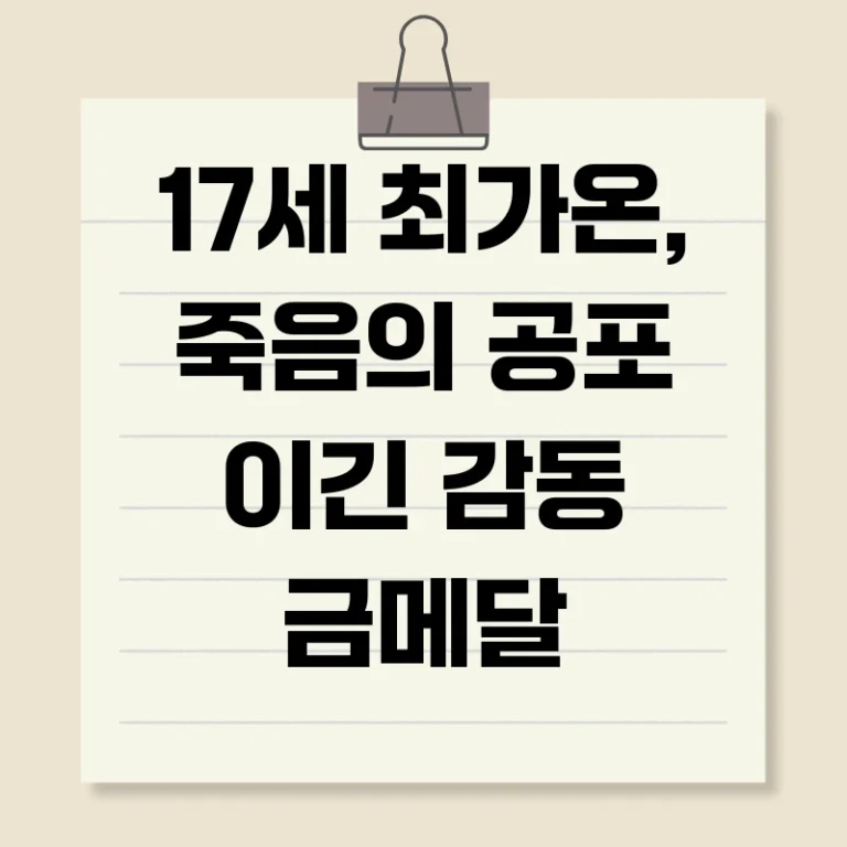 이러한 요인들이 복합적으로 작용하여 최가온 선수는 ‘죽음의 공포’를 이겨내고 감동적인 금메달을 획득할 수 있었습니다.
