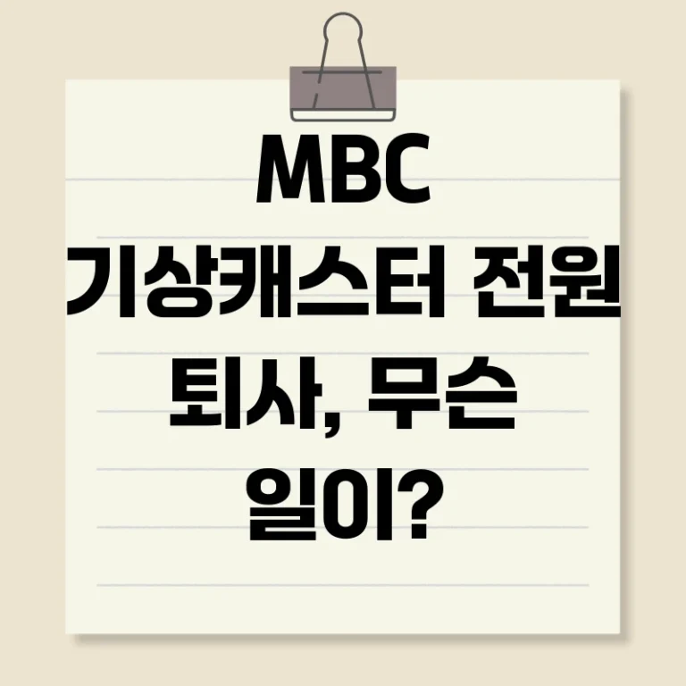 최근 MBC 기상캐스터 전원 퇴사 소식이 전해지며 많은 이들이 궁금증을 자아내고 있습니다. 단순한 계약 종료인지, 아니면 다른 숨겨진 이유가 있는 것인지, 이번 사건의 배경과 원인, 그리고 앞으로의 전망까지 심층적으로 분석해 보겠습니다.